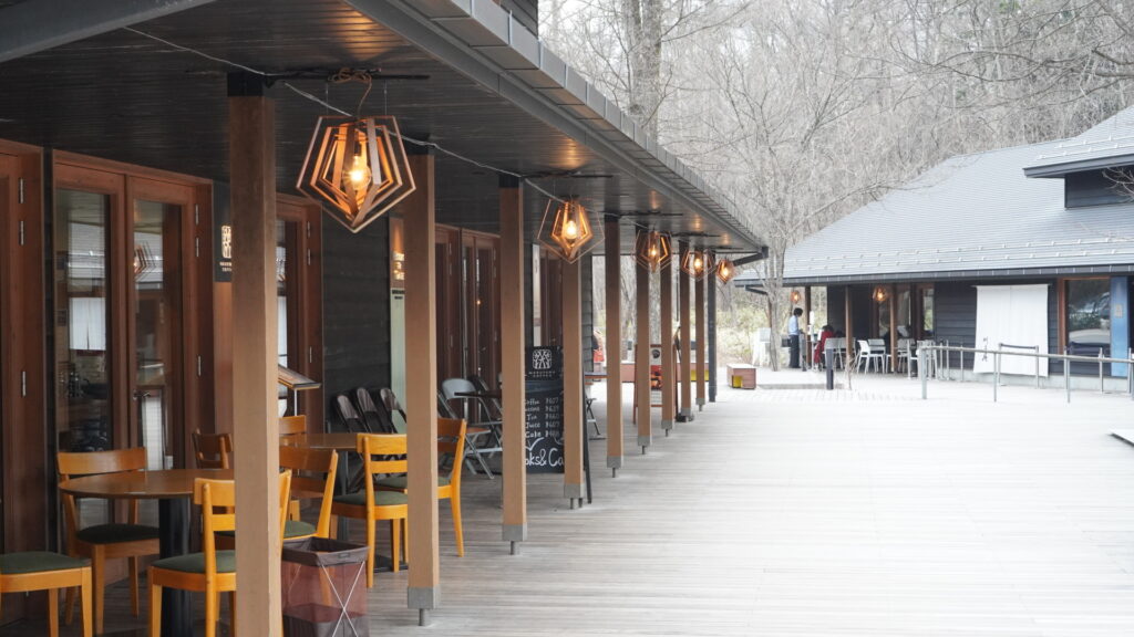 軽井沢の人気観光スポット、「ハルニレテラス」に到着しました。