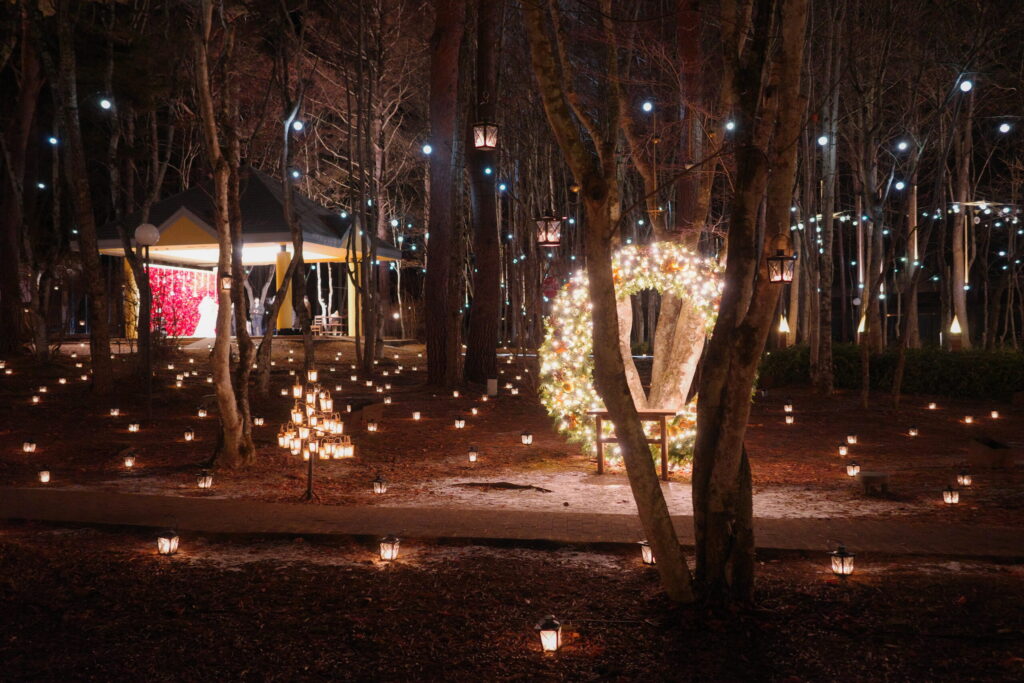 教会、軽井沢の自然、イルミネーションが織りなす世界は、まるで夢の世界に入り込んだかのような異世界感を感じられます。
