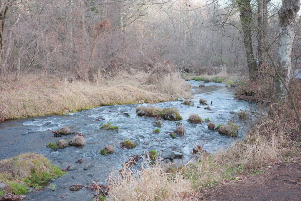 ハルニレテラスに近づくと、横に川が流れていました。