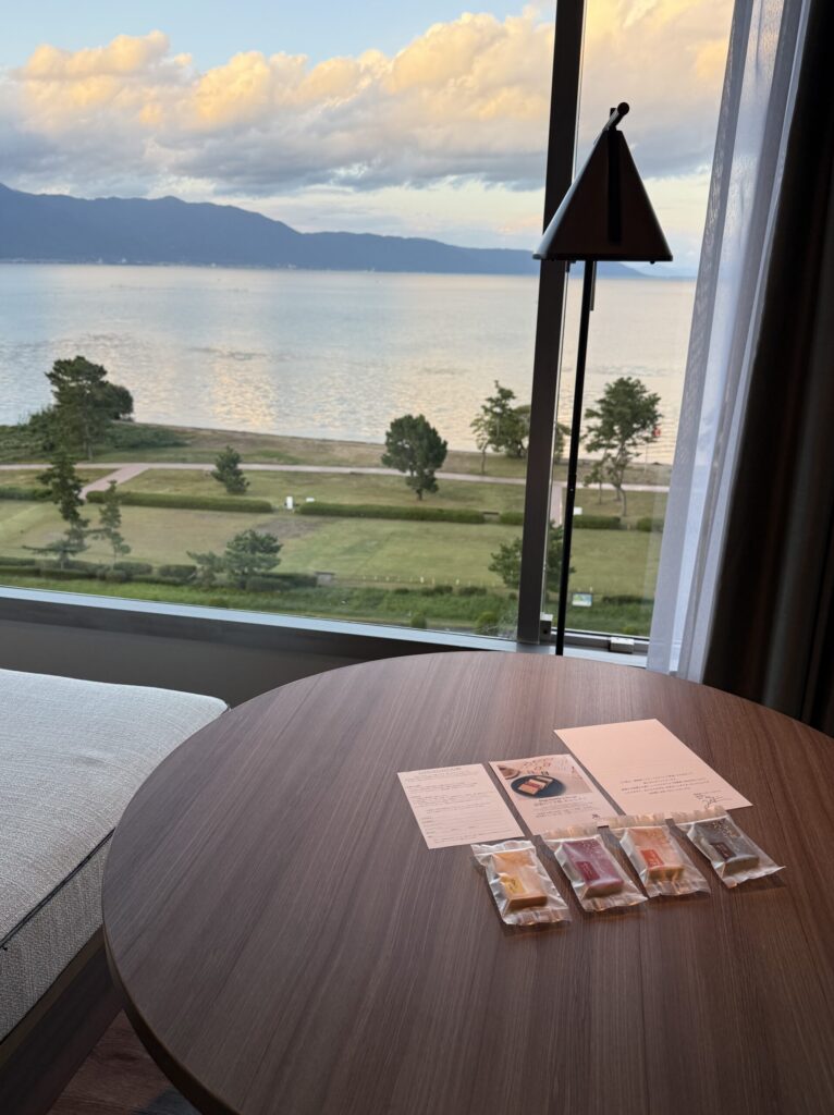 宿泊した部屋からは琵琶湖が眺められ、美しい景観も持ち合わせています。