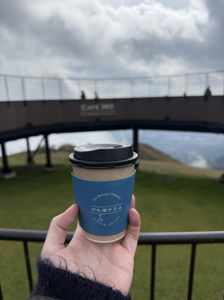 さらのリフトにのると、360度景色を見渡せる「カフェ360」があり、コーヒーを飲んで温まります。