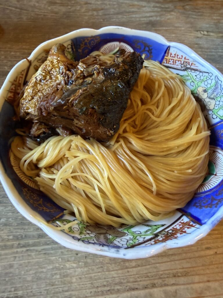 甘辛く煮付けられた鯖の旨みがそうめんにしっかり染み込み、見た目以上に食べ応えがあります。
