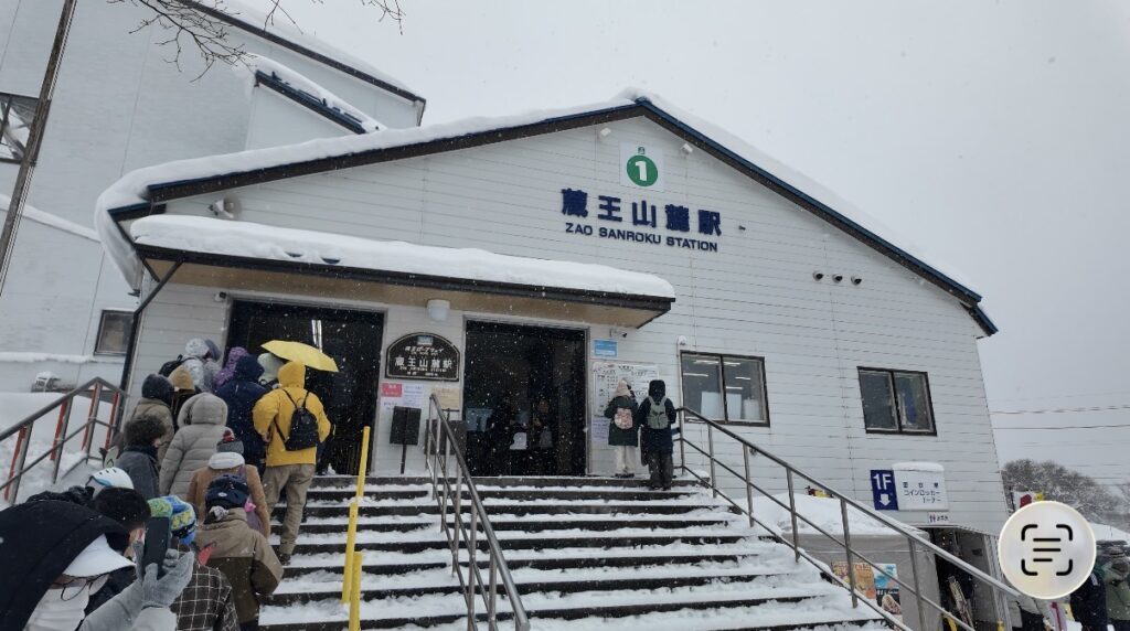 蔵王温泉街を抜けて、蔵王ロープウェイがある蔵王山麓駅に到着しました。