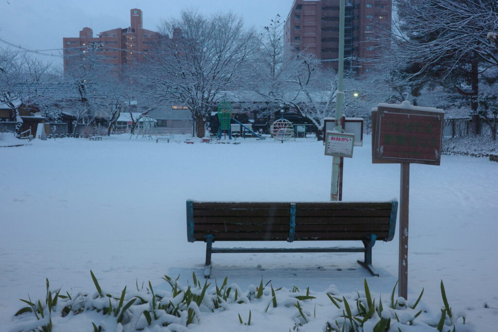 近くに公園があったので立ち寄ると、これまた一面雪景色です。